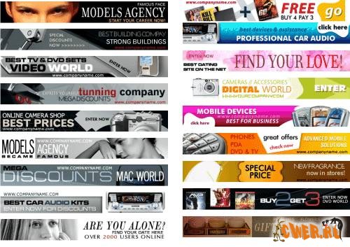 20 шаблонов баннеров для интернет-рекламы размером 468х60, в PSD формате + JPG превью + к каждому отдельно шрифты