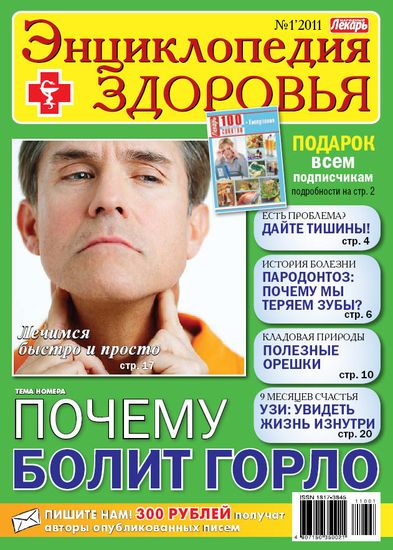 Это издание своего рода настольная энциклопедия здоровья, в каждом выпуске которого вы найдете информацию, посвященную лечению и профилактике наиболее распространенных заболеваний. Тема данного номера: - Почему болит горло?