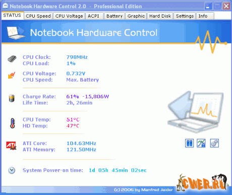 Если вы хотите, чтобы ваш ноутбук проработал в дороге как можно дольше, попробуйте воспользоваться программой Notebook Hardware Control.
