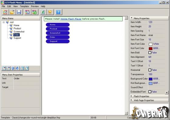 123 Flash Menu - мощный инструмент для создания внушительного и профессионального меню за 3 шага. Сотни предсозданных шаблонов помогают Вам осуществлять персонифицированное меню. Это дает вам динамические эффекты подобно анимации, звукам, градиенту и прозрачности без навыков программирования. Программа предлагает многоуровневое меню Flash с полностью настраиваемым текстом, шрифтом, связью, фоном, стилем границы, теневым стилем и прочими эффектами. Содержит в себе более 100 готовых шаблонов.
