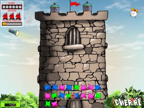 Чтобы победить в этой схватке придется проявить все свое внимание и сообразительность. И не забывайте поглядывать по сторонам, потому что игроку регулярно приходят на помощь бонусы и подсказки. Вам пригодятся гранаты, пистолеты, масло, холодильник и многое другое, без чего нельзя обойтись при защите замка от пиратов.