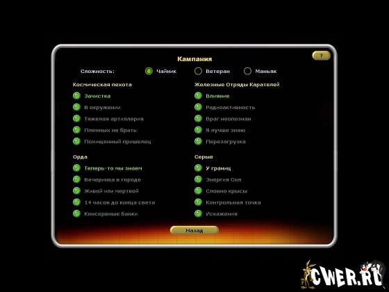- 4 расы: космическая пехота, орда, железные отряды карателей, серые