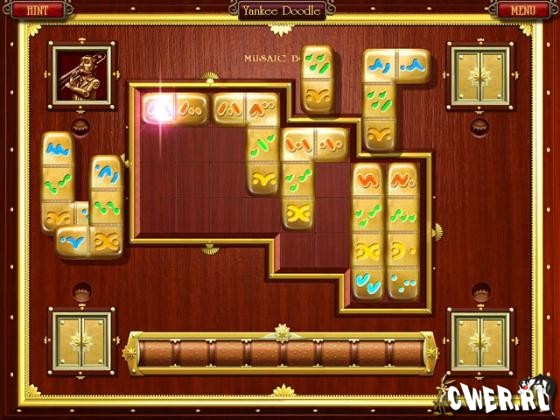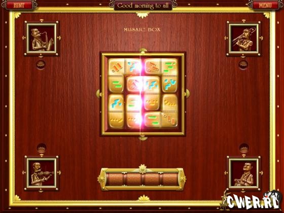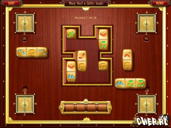 У нас есть определённый набор таких фигур, есть игровое поле, куда их надо поместить и небольшая подсказка - полоска внизу. При нажатии на ней мы можем прослушать определённые тональности искомой мелодии. Исходя их этого шаблона, мы и будем компоновать фигуры в одно целое.