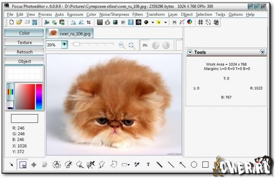 Focus Photoeditor - мощный и легкий в использовании редактор изображений, который вы сможете использовать для обработки и коррекции цифровых фотографий, а также для создания графики для ваших веб-сайтов, дома и офиса. Вы сможете получать фотографии с жесткого диска, другого приложения, а также с помощью сканера или фотокамеры и начинать их немедленную обработку в данном редакторе. В программе имеются функции для автоматического преобразования фотографий за один клик, благодаря чему вы сможете улучшить ваши фотографии за считанные секунды. Также вы сможете самостоятельно отредактировать внешний вид изображений при помощи встроенных в программу инструментов. Focus Photoeditor является неплохим выбором для новичка и для профессионального фотографа, т.к. в нем сочетаются множество качественных функций легких в использовании и настройке.