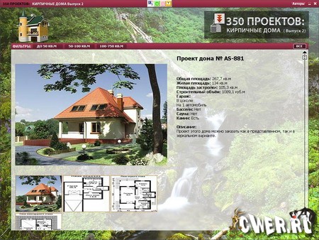 Кирпичный дом - это не только прочно и долговечно, но и престижно! Основные достоинства кирпичных домов: долговечность, высокая защищенность от возгорания, устойчивость к биологическим факторам и, конечно, внешний вид. С помощью этой программы вы сможете выбрать наиболее подходящий для вас проект и построить или заказать добротный и солидный дом. На диске представлены готовые проекты домов разной площади и планировки, решенные в традиционных и необычных стилях: кантри, конструктивизм, модерн, - удобные для семей различного размера и достатка. Конструктивные схемы домов позволят в процессе строительства вносить изменения в принятое планировочное решение.