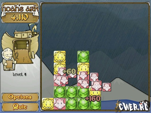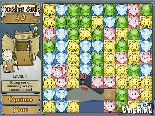 В этой игре вы выступаете в роли Ноя и в преддверии грядущего потопа, пытаетесь собрать каждой твари по паре в Ноев ковчег. Ну, так как игра относится к жанру "три в ряд", в данном случае Ной собирает по три животных. И даже больше - посмотрите сами.