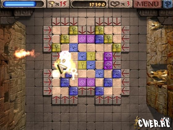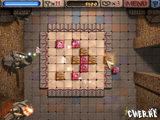 В этой игре вам предстоит отправиться в древний Египет и пройти 150 трудных уровней. Цель игры проста – уничтожить на доске цветные метки, соединяя поверх них по три камня одного цвета. Камни помещаются на игровое поле с помощью стрелок, расположенных вокруг доски. Примите вызов фараона. Соединяйте камни с иероглифами, чтобы обнаружить потрясающую золотую пирамиду!