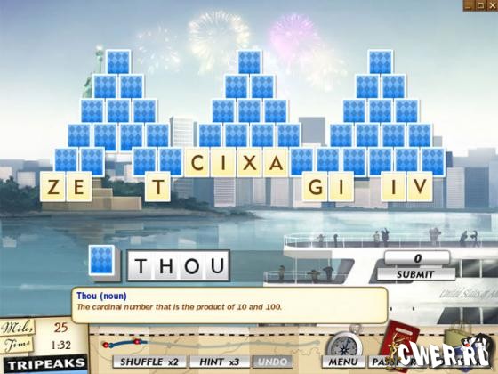 Данная игра является уникальной смесью карточных пасьянсов и игр в слова. Вы отправитесь в путешествие по всему миру. В этой игре есть 4 уникальных режима, они позволят вам создавать слова, о существовании которых вы даже не догадывались. Каждое слово идет со словарной дефиницией, так что вам не придется гадать, что же означают такие слова как Qua или Xeric. Кроме того, вы будете собирать фотографии и заносить в журнал заметки обо всех посещенных вами странах и достопримечательностях. Не забывайте также покупать на призовые деньги сувениры, которые напомнят вам об этом великолепном путешествии!