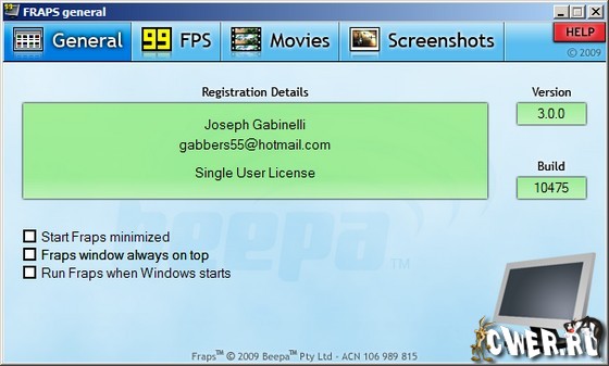 Скачать программу Fraps 3.0.0 Build 10475 (2,43 МБ):