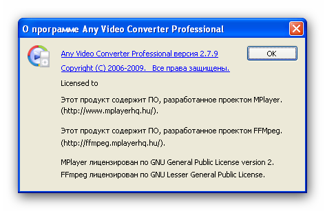 Any Video Converter Pro - это средство с графическим интерфейсом, быстрой скоростью и высоким качеством, позволяющее легко переводить видео в различные форматы. Данное средство позволяет вам без лишних усилий переводить видео файлы в любой формат БЕСПЛАТНО! Данная программа может переводить практически все видео средства, включая DivX, XviD, MOV, rm, rmvb, MPEG, VOB, DVD, WMV, AVI в формат MPEG-4 для iPod/PSP или других портативных видео устройств, МР4 плейера или смартфона. Программа обладает невероятно быстрой скоростью и высоким качеством. Any Video Converter позволяет вам получать удовольствие от просмотра любого формата видео на вашем iPod, Zune, PSP, мобильном телефоне или МР4 плейере.