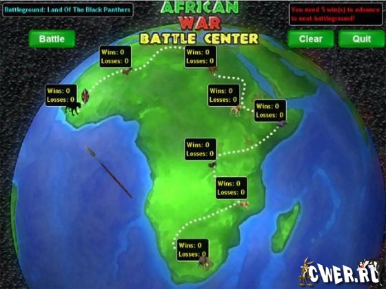 Увлекательная карточная война на фоне потрясающего африканского ландшафта несомненно привлечет ваше внимание ошеломляющей 3D графикой, эффектами и оригинальной музыкой африканских племен. Из четырех режимов игры вы можете выбрать как быструю схватку, так и продолжительные военные действия, которые будут идти до тех пор, пока один из игроков не захватит в плен всех оставшихся воинов. Это война!