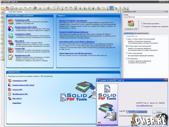Solid PDF Tools - это один из нескольких продуктов Solid Documents, предназначенный для PDF. Инструменты предназначены для сканирования, создания и конвертирования. Создание доступных для поиска, архивируемых, документов PDF и совместимых документов. Создавайте файлы формата PDF из любой программы на основе Windows. Добавляйте логотипы, оттиски и права собственности на документы. Обеспечьте защиту ваших документов PDF, используя пароли, права доступа и кодировку. Манипулируйте со страницами в файлах PDF: уничтожайте, извлекайте, переставляйте, печатайте.