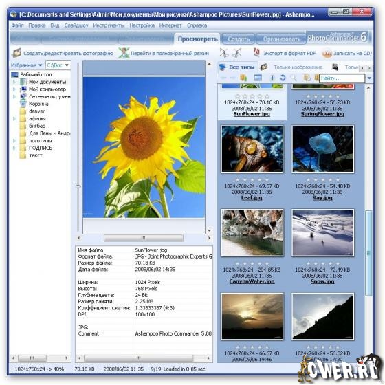 Ashampoo Photo Commander помогает организовать и просматривать ваши снимки, редактировать и улучшать их, и все это в одной программе. Кроме этого, с помощью программы можно управлять вашими аудио и видео файлами. Процесс работы сводится к нескольким нажатиям клавиш - добавляйте рамки, правьте ваши фотографии, создавайте поздравительные открытки, коллажи и слайд-шоу, записывайте фотографии на CD/DVD или выкладывайте их на вебсайт, и многое другое. Новый интуитивно-понятный интерфейс позволяет всегда видеть, какие функции доступны, все настолько просто, что не нужно обращаться к руководству. Программа поддерживает свыше 60 графических, аудио и видео форматов.