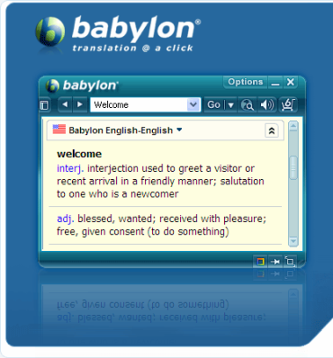 Babylon, пожалуй, самый удобный, быстрый и корректный словарь-переводчик слов и словосочетаний в один клик. Позволяет переводить с английского языка на 75 языков мира, туда и обратно. Не перегружен лишними определениями, а моментально приводит значения слова в порядке его употребления, так точно, что порой создается впечатление, что в этом участвовал сам лингвист - носитель языка. Управляется предельно просто, c помощью позицирования на слове и нажатия "hotkey". Включает в себя английские тематические и толковые словари и возможность перевода мер из одной системы в другую. Имеет различные языковые регулируемые движки для озвучивания слов.