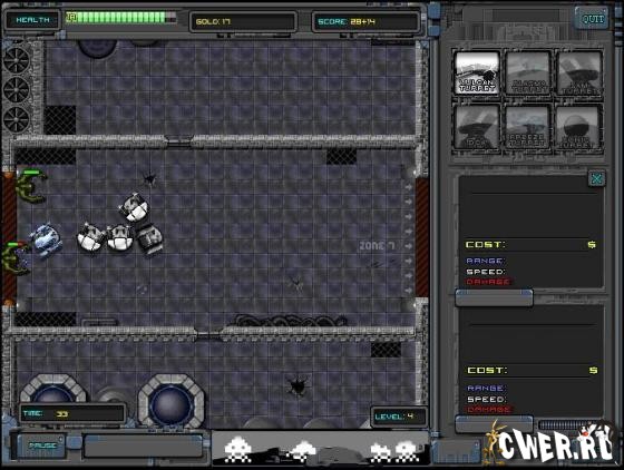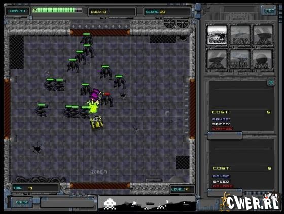 Защитите вашу базу от вторжения, ставя нужные башни в стратегических точках, с возможностью модернизирования. Башни бывают разных типов, от обычных туреллей до уничтожителей.