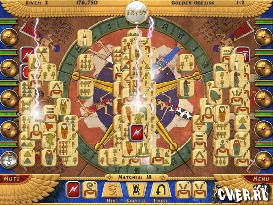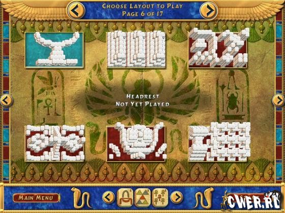 Очередной экземпляр развивающегося жанра игр "Маджонг". Эта игра заставит Вас окунуться в мир древнего Египта: Вам поручается отыскать украденные сокровища люксора. 3 режима игры, 3 режима сложности, 200 уникальных уровней, 3 схемы оформления карт.