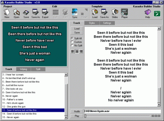 Этот удобный профессиональный инструмент предназначен для создания караоке-дисков путем синхронизации текстовых и музыкальных файлов и записи готовых файлов на CD. C помощью данной программы процесс превращения независимых музыкальных и текстовых файлов в файлы-караоке можно будет до предела упростить и максимально автоматизировать. Karaoke Builder Studio — прекрасный выбор для профессиональных караоке-студий, а дружественный и интуитивно понятный интерфейс программы и расширенная система помощи в совокупности с приемлемой ценой делают эту программу привлекательной для домашних пользователей.