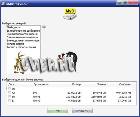 MyDefrag - представляет собой дисковый дефрагментатор и оптимизатор для Windows 2000, 2003, XP, Vista, 2008, а также Win7. Быстрый и нетребовательный к ресурсам, MyDefrag использует MS API, обладает несколькими стратегиями оптимизации и может дефрагментировать флоппи- и USB-диски, карты флэш-памяти и вообще все устройства, распознаваемые системой как диск.