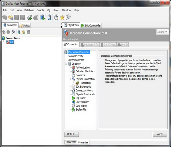 DbVisualizer - межплатформенный инструмент для работы с базами данных, который представляет собой универсальное решение для быстрой разработки, тестирования и администрирования реляционных баз данных. Он предлагает разработчикам целый ряд инструментов, обеспечивающих помощь в разработке баз данных и выполнении таких задач, как просмотр объектов, создание и запуск SQL-скриптов, а так же просмотр и редактирование данных. Программа поддерживает все основные коммерческие базы данных, включая Oracle, DB2, Mimer, SQL Server, Sybase ASE, Informix и альтернативные базы данных с открытыми исходными кодами, такие как MySQL, PostgreSQL и JavaDB/Derby.