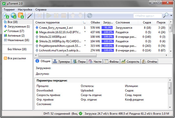 Особенности µTorrent: