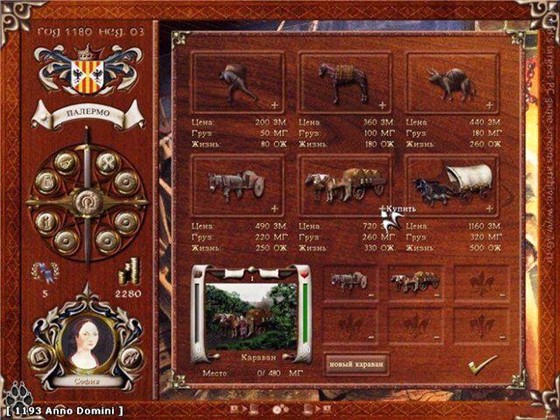 Классический походовый торгово-экономический симулятор, в котором вам предлагается дорасти от уровня среднестатистического искателя удачи с несколькими позвякивающими монетами в кармане до уважаемого и обеспеченного горожанина, владельца огромной торговой империи, включающей различные производства во многих городах и снующие между ними многочисленные караваны, обладающего, помимо капитала, серьезным политическим весом. Место и время действия - средневековая старушка Европа в период с 3 по 7-й крестовые походы.