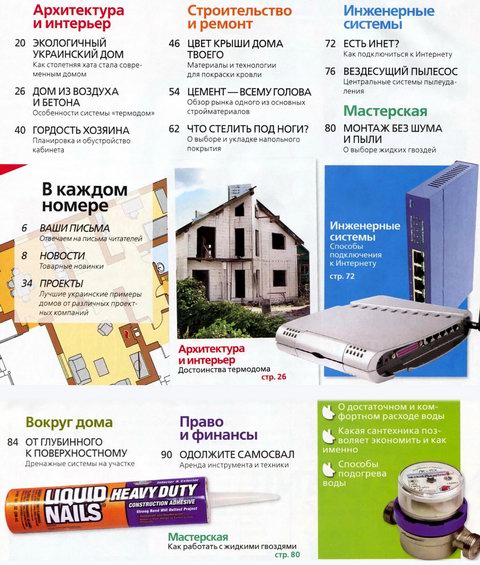 Журнал компетентных практических советов, ориентированных на конечного потребителя, который строит, ремонтирует сам или хочет квалифицированно проконтролировать все процессы на объекте. Даются ответы на любые мелкие вопросы и предложения конкретных решений для самых разных дежурных ситуаций.