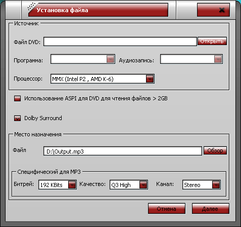 Программное обеспечение для снятие звуковой дорожки с вашего DVD.Поддерживает систему Dolby.