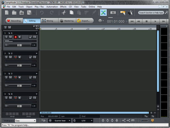 MAGIX Samplitude Producer позволяет осуществлять мастеринг смикшированного (или отдельно загруженного) материала - от монтажа и обработки до разметки CD-треков, и прямо из рабочего окна проекта записывать аудио-CD в полном соответствии со стандартом Red Book. Вполне оправдывая свое громкое название, этот вариант MAGIX Samplitude Producer действительно справляется с такими продюсерскими задачами, как поддержка работы не только с аудио, но с MIDI и даже с видео. А возможность сводить аудиоматериал в форматах Surround Sound (как традиционном двухканальном, так и шестиканальном 5.1) расширяет и без того не узкие горизонты применения программы. Многодорожечная часть MAGIX Samplitude Producer способна одновременно работать с 999 моно- или стереотреками. Виртуальный микшер позволяет направлять сигналы на такое же количество дополнительных шин, которые могут быть сконфигурированы как посылы или выходы подгрупп.
