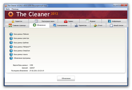 The Cleaner - многофункциональная программа для чистки вашего компьютера от шпионов, троянов, червей и т.д. ПО обеспечивает защиту компьютера в реальном времени от попыток несанкционированной установки вредоносных программ. Также реализована зона карантина, проверка компьютера по расписанию, получение обновлений базы данных сигнатур по троянам и другому вредоносному ПО через Интернет.