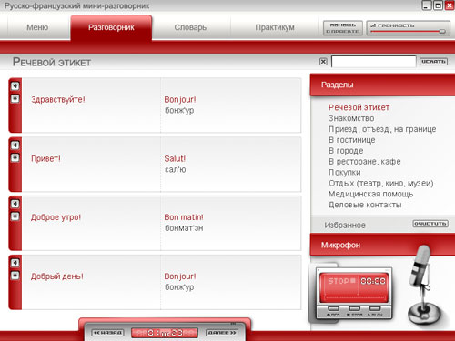 Франция по праву считается туристической меккой Европы. Российских туристов притягивают красоты Парижа, старинные замки Луары, шик Лазурного берега. Во Франции можно увидеть памятники античности и побывать в ультрасовременных кварталах, продегустировать лучшие сорта вин и полюбоваться шедеврами искусства. «Русско-французский мини-разговорник» сделает поездку во Францию еще более приятной, избавив вас от языковых проблем. Около 1 450 озвученных фраз и слов, содержащихся в нем, помогут объясниться в самых распространенных и типичных ситуациях: в самолете и поезде, на границе, в гостинице, ресторане, магазине и т. д. Есть возможность прослушать звучание фраз, сравнить свое произношение с эталоном и сформировать собственный рабочий словарь самых нужных выражений.