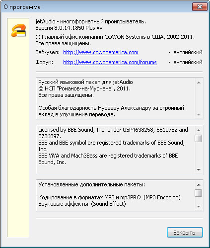 Скачать программу Cowon JetAudio 8.0.14.1850 Plus VX + Rus (41,12 МБ):