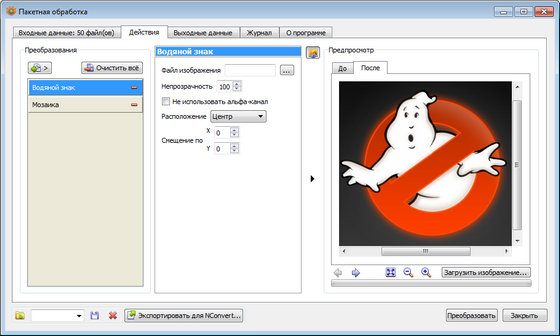 - Интеграция командной строки через NConvert