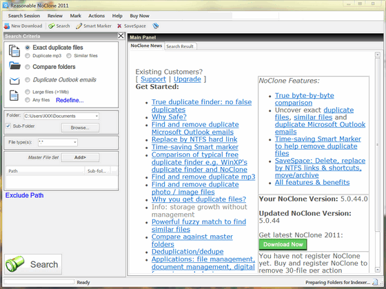 Reasonable NoClone - программа для поиска и удаления дубликатов файлов на отдельном компьютере или в локальной сети. Поиск одинаковых файлов ведется по большому числу критериев – имени, версии, размеру и пр. Отобранные программой файлы анализируются, побайтово сравнивая их код. NoClone может проводить поиск повторяющихся файлов любого формата, от библиотек dll до mp3. Если процедура поиска занимает много времени, ее можно продолжить в следующий раз, сохранив результаты текущей сессии в формате CSV.