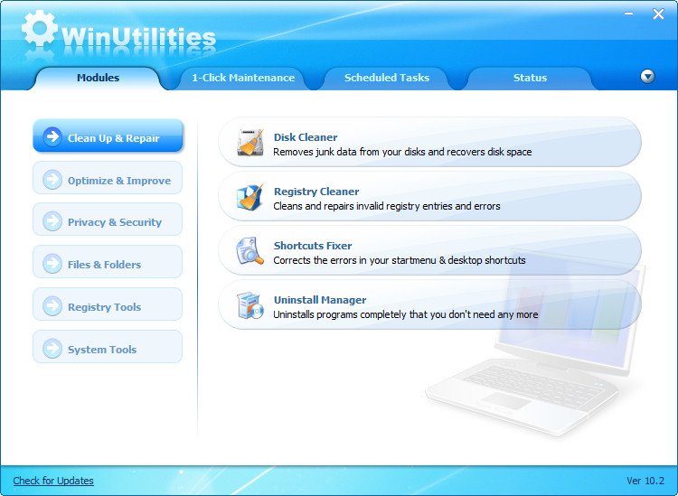 WinUtilities - это набор инструментальных средств предназначенных для того чтобы оптимизировать вашу систему, удалить ненужные файлы и очистить данные, которые остаются после работы в интернете. WinUtilities позволяет находить и удалять критические неисправности, битые ссылки и ключи в реестре, поможет правильно удалить ваши приложения и программы, а также очистит историю интернета, cookies и многое другое.