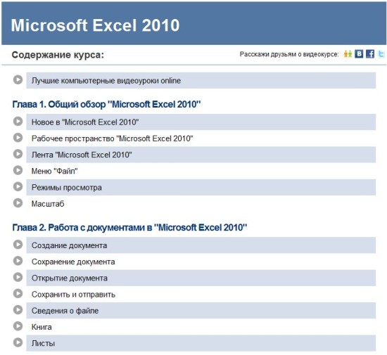 Скачать полный видеокурс Microsoft Excel 2010 (187,83 МБ):
