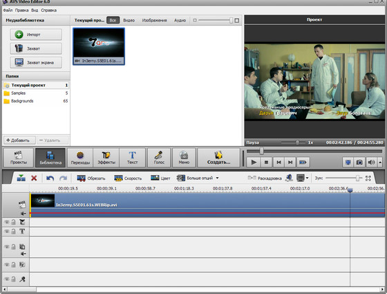 AVS Video Editor - полнофункциональный видео редактор для создания профессионального видео и процессинга. Вы сможете произвести захват видео с видео камер и TV тюнеров, наложить разнообразные эффекты, создавать и записывать DVD, экспортировать фильмы в различные видео форматы, редактировать видео и преобразовывать его для iPod, PSP, мобильных телефонов и других портативных плееров. Алгоритм автоматического определения сцены позволяет Вам быстро перемещаться, редактировать файлы и предотвращает ошибки при нарезке и комбинировании файлов.