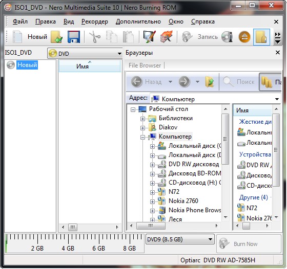 - Перенос файлов методом перетаскивания для записи на компакт-диски, диски DVD и Blu-ray, а также для сохранения образов