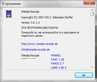 Скачать программу XMedia Recode 3.0.1.3 (6,35 МБ):