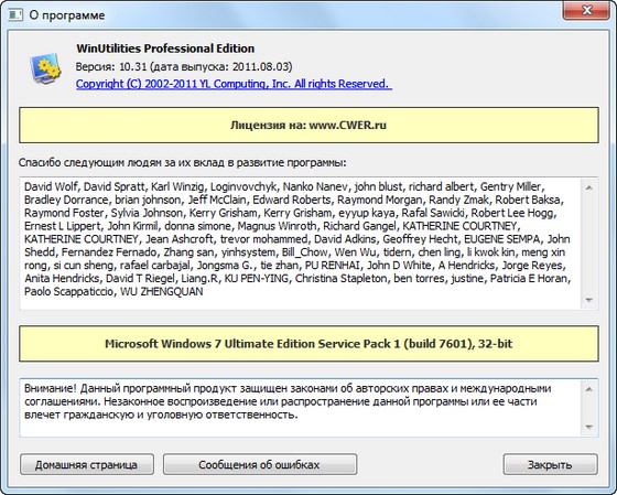 Скачать программу WinUtilities Pro 10.31 (7,50 МБ):