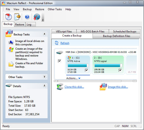 Macrium Reflect – программа разработана для создания и восстановления образов жёсткого диска и резервирования данных. Программа создаёт образ Windows во время ее использования и не требует для этого перезагрузку компьютера или каких-то ещё дополнительных действий. Кроме того, возможен просмотр образа диска и планирование бэкапов.