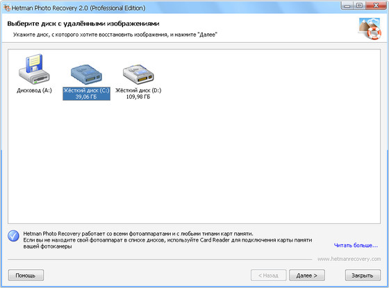 Hetman Data Recovery Pack - пакет программ предназначен для восстановления случайно удаленных файлов, восстановления информации, утерянной после форматирования или удаления логического раздела, восстановления файлов, поврежденных вирусной атакой, сбоем электропитания, программного или аппаратного обеспечения. Утилиты восстанавливают удаленные файлы с жестких, внешних дисков, USB флешек, карт памяти фотоаппаратов, мобильных телефонов, смартфонов и КПК.