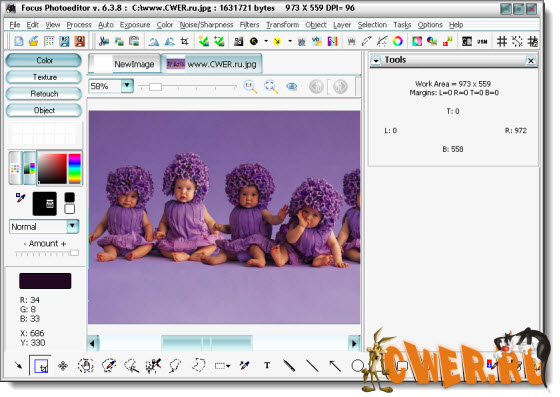 Focus Photoeditor - мощный и легкий в использовании редактор изображений, который вы сможете использовать для обработки и коррекции цифровых фотографий, а также для создания графики для ваших веб-сайтов, дома и офиса. Вы сможете получать фотографии с жесткого диска, другого приложения, а также с помощью сканера или фотокамеры и начинать их немедленную обработку в данном редакторе. В программе имеются функции для автоматического преобразования фотографий за один клик, благодаря чему вы сможете улучшить ваши фотографии за считанные секунды. Также вы сможете самостоятельно отредактировать внешний вид изображений при помощи встроенных в программу инструментов. Focus Photoeditor является неплохим выбором для новичка и для профессионального фотографа, т.к. в нем сочетаются множество качественных функций легких в использовании и настройке.