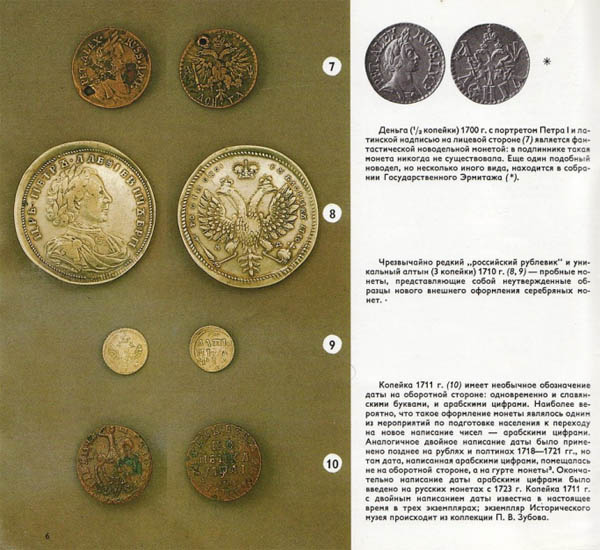 Представлены цветные изображения и описания редких русских монет XVIII - начала XX в., из собрания отдела нумизматики Государственного Исторического музея. В книге описано начало регулярного чекана монет в России, посвящается русским редким монетам, чеканившимся с 1699 - 1917 гг.. В основном здесь представлены очень редкие монеты, практически не встречающиеся в собраниях периферийных музеев нашей страны и в частных коллекциях, причем некоторые из этих монет вообще являются уникальными. Все монеты сопровождены кратким изложением причин и обстоятельств их чеканки.