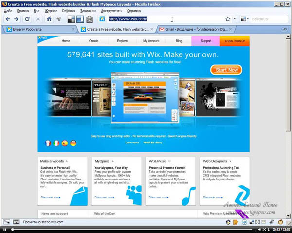 Вашему вниманию предлагается, видео-урок по созданию флеш сайта за 20 мин. В этом конструкторе много интересных возможностей по вставке различных мультимедиа-фрагментов (видео, аудио, анимация), а также большой выбор готовых шаблонов, на основе которых Вы можете создавать свои flash-сайты достаточно быстро.