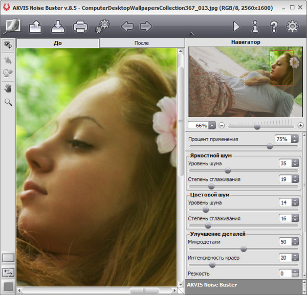 AKVIS Noise Buster — плагин для подавления цифрового шума на изображении. Устранение шума — один из обязательных этапов предварительной обработки большинства фотографий. Лучше выполнить эту процедуру с самого начала, чем получить в процессе редактирования изображения внезапно проявившиеся цветовые пятна. К сожалению, даже использование последних новинок цифровой фототехники не гарантирует избавление от этой проблемы.