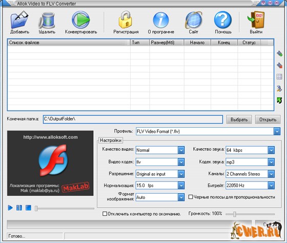 Allok Video to FLV Converter 4.8.0310 + русификатор