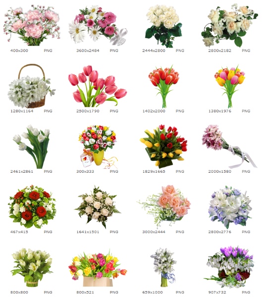 Скачать растровый клипарт "Подборка клипарта букетов цветов на прозрачном фоне" (117 МБ):