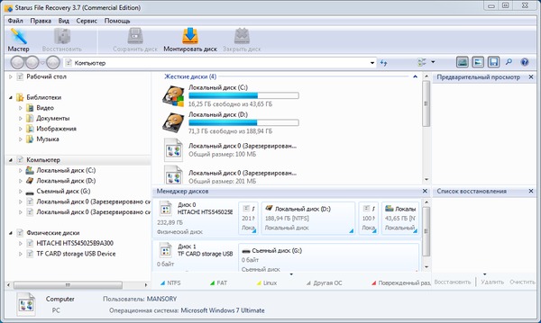 Starus File Recovery работает во всех версиях Windows, включая Windows 7 и Windows 2008 Server, и поддерживает все файловые системы, включая FAT16, FAT32, NTFS4 и NTFS5. Программа также восстанавливает сжатые, шифрованные файлы NTFS и альтернативные потоки, прикрепленные к файлам.