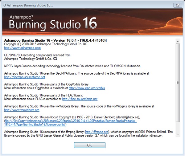 Скачать портативную программу Ashampoo Burning Studio 2016 16.0.4 (84,34 МБ):