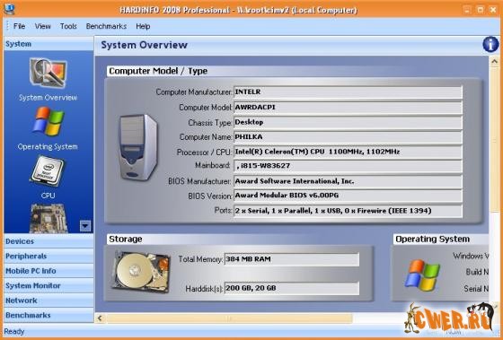 Скачать Portable HARDiNFO 2008 Professional 6.01 build 3180 (22,63 МБ):